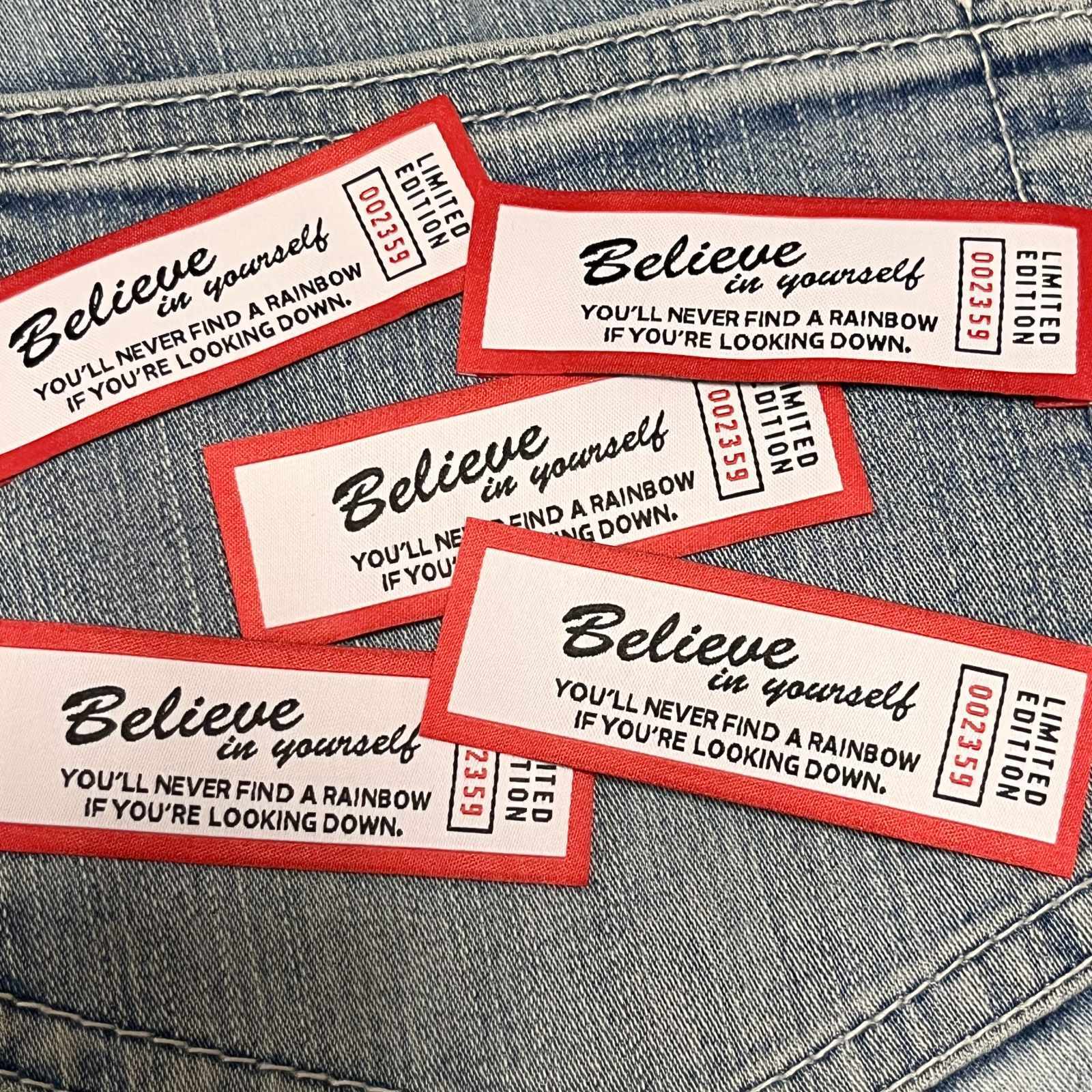フレームロゴタグ 横長 Believe 赤